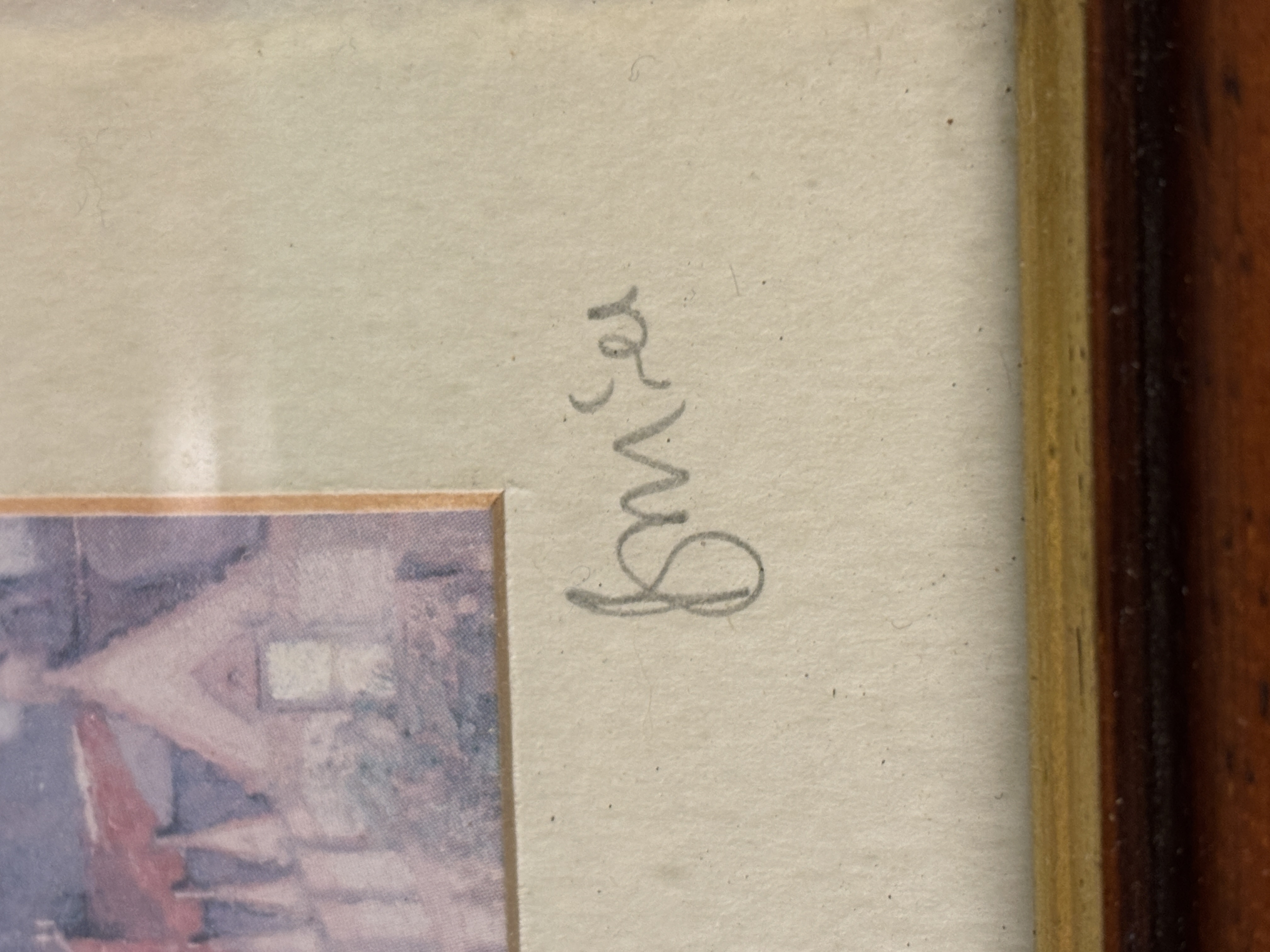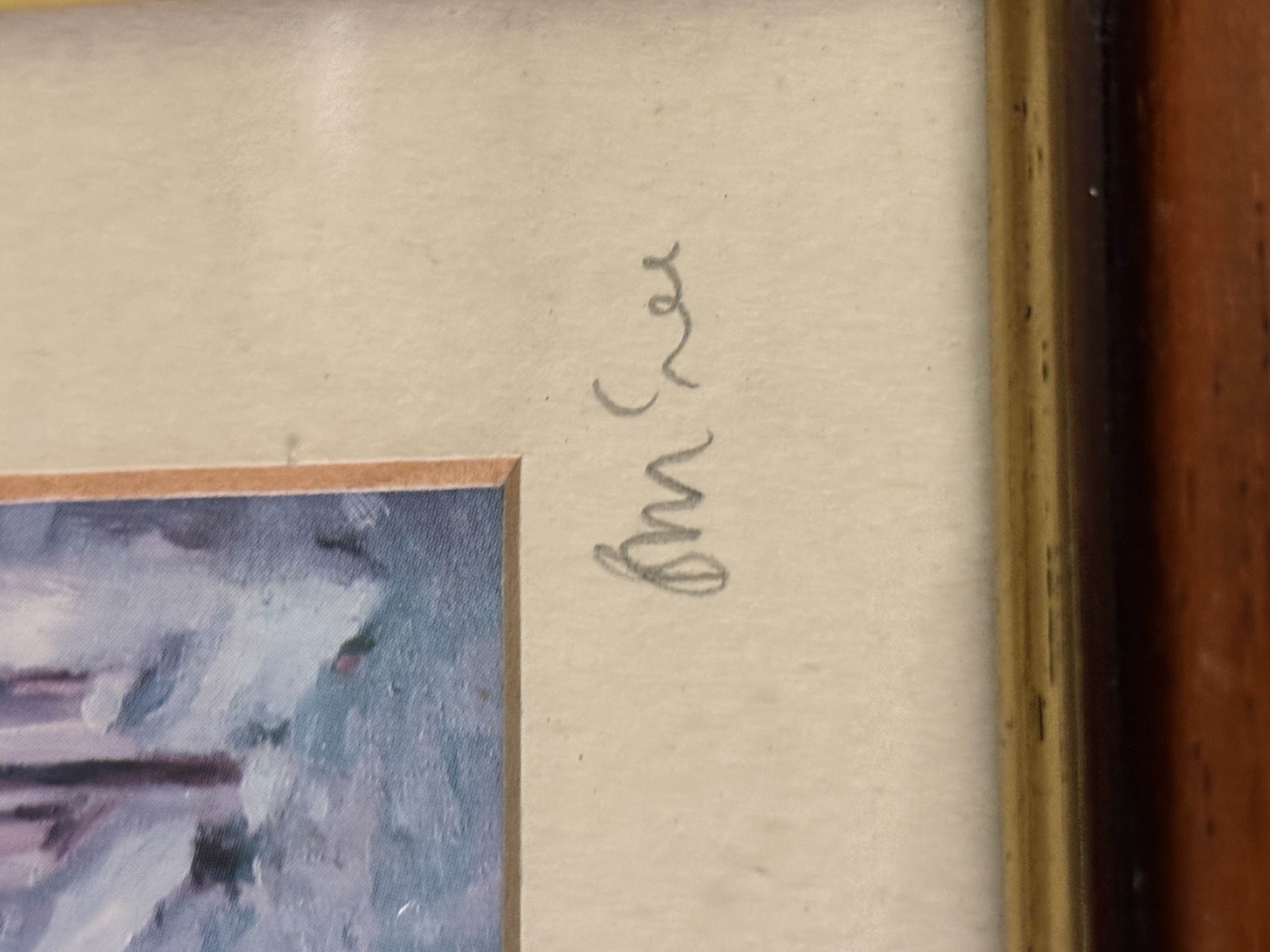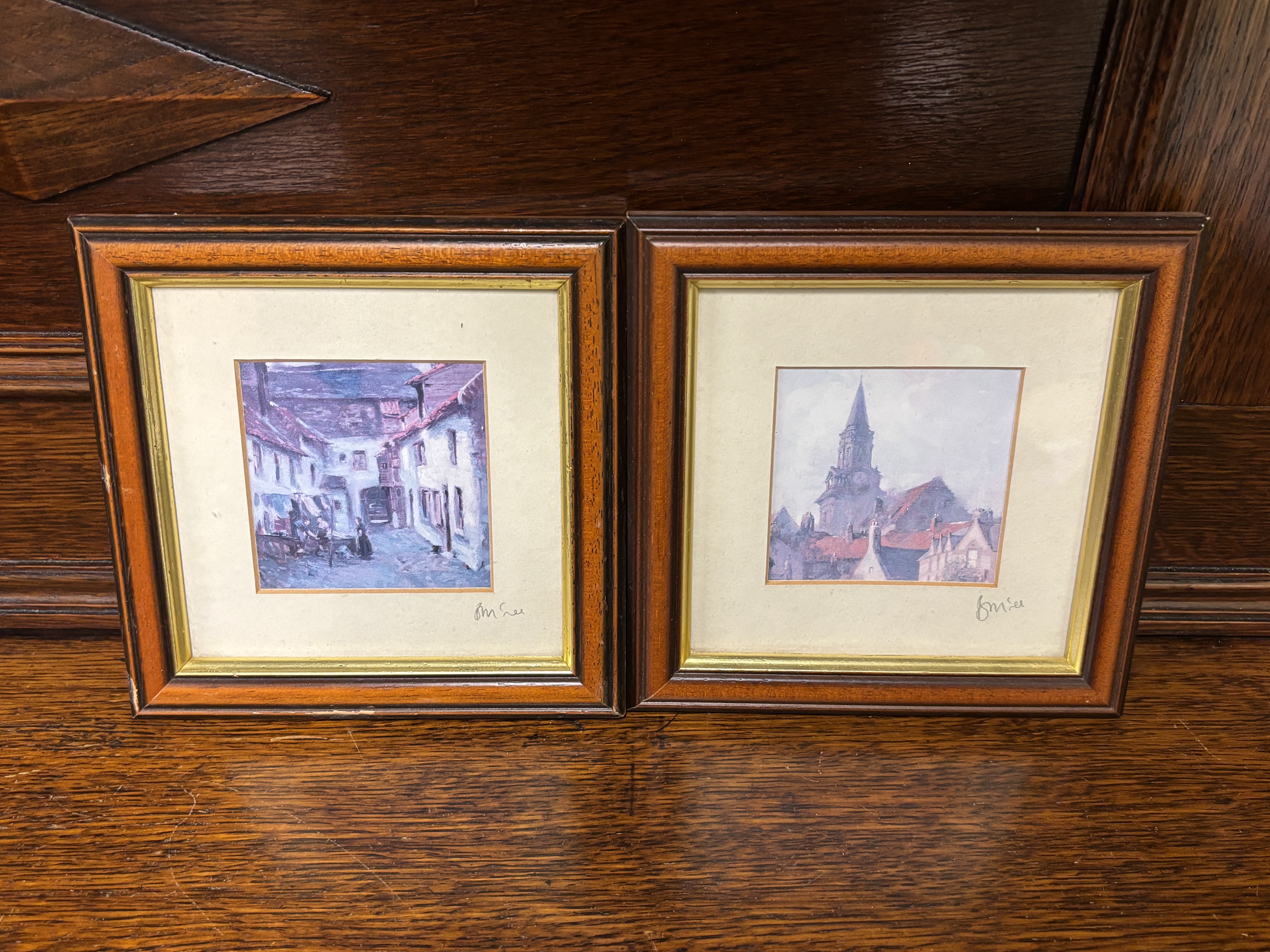 Two small framed prints views of Berwick on Tweed. Each piece is signed in pencil on the mount below the image; the signatures appear to read B. M. Lee. Measurement 16 cm x 16 cm