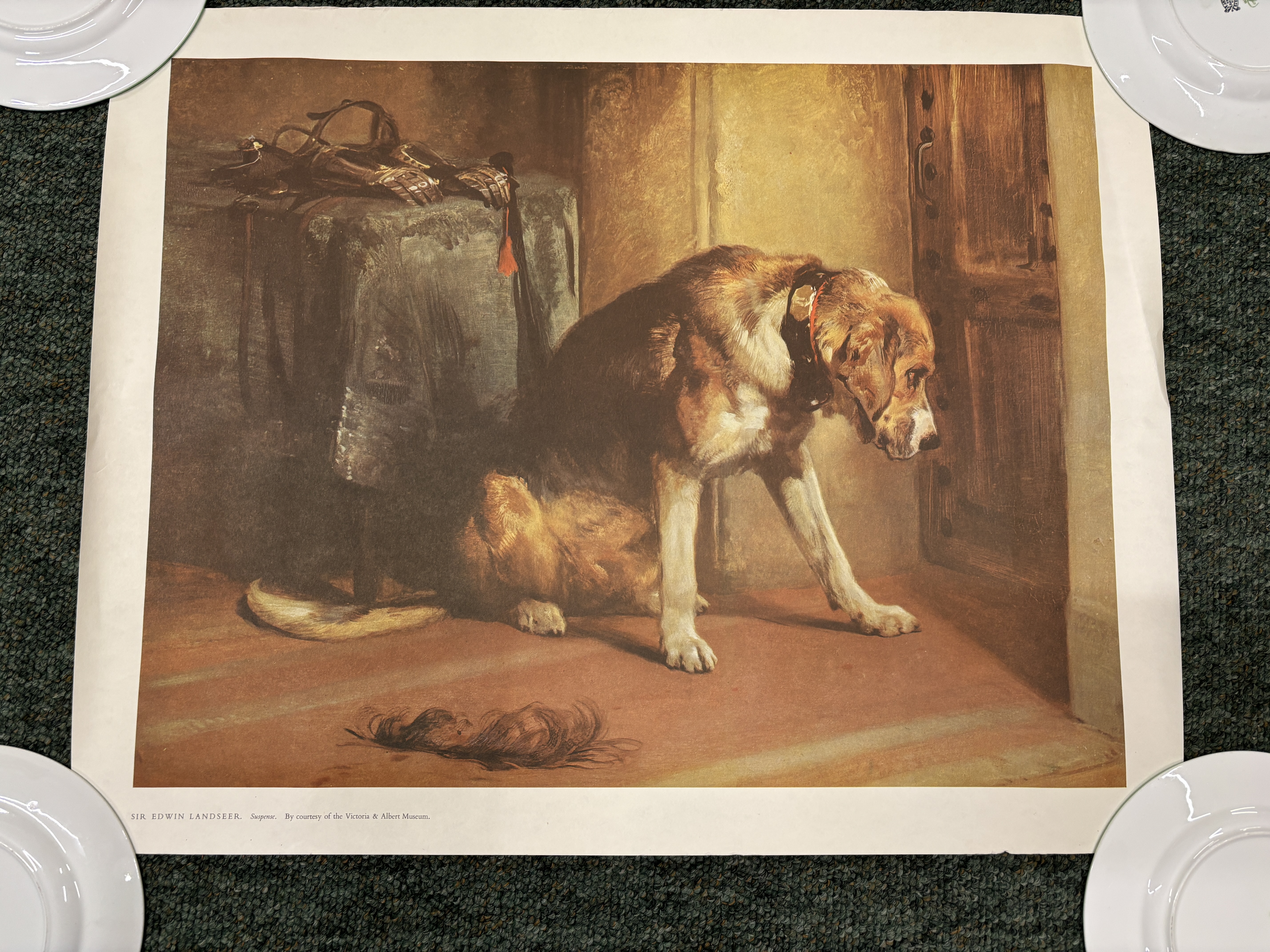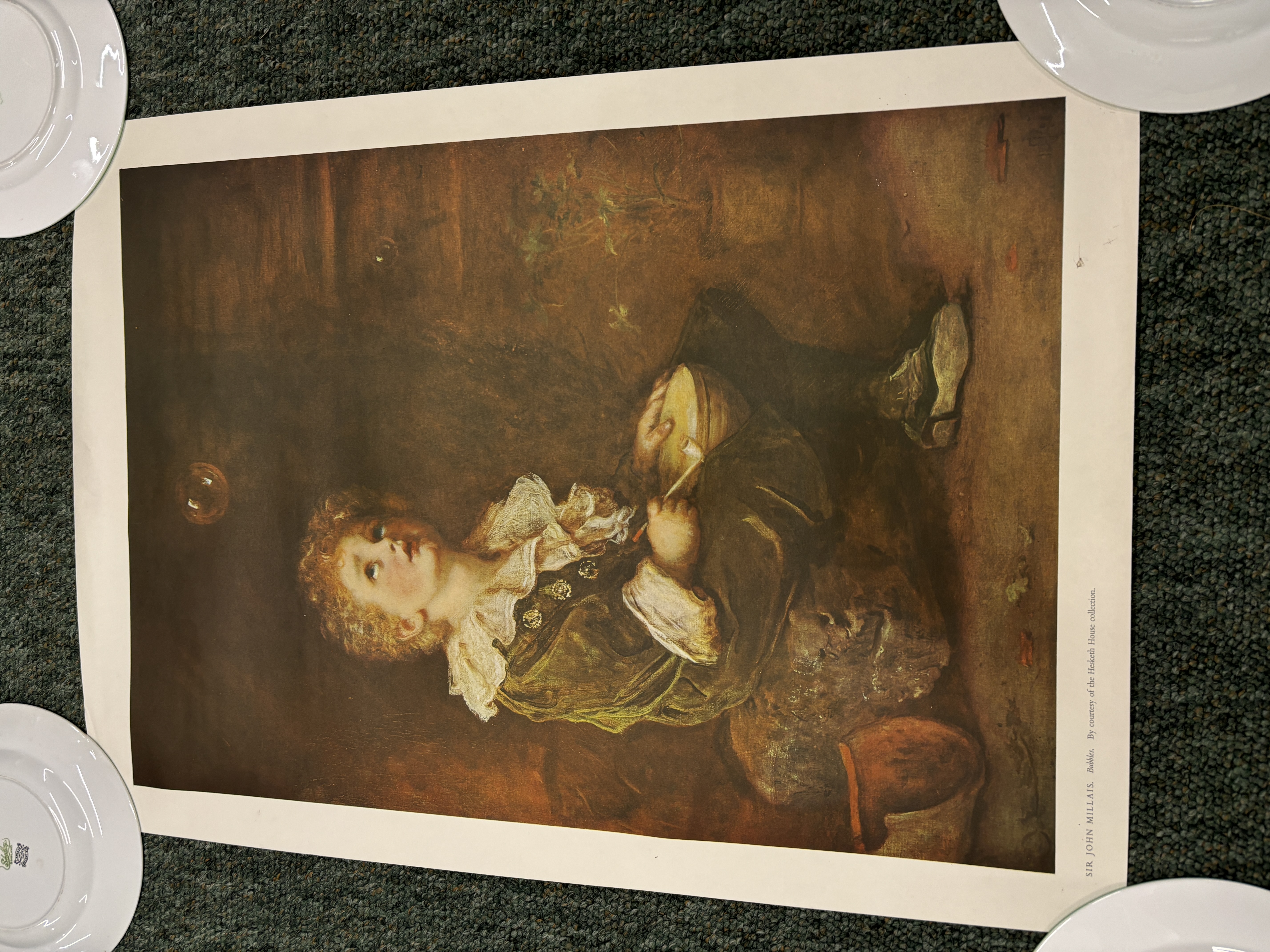 Four Prints featuring the following works ; Suspense (Landseer), Bubbles (Millais), Salisbury Cathedral and The Mill Dedham by John Constable measuring 46 cm x 58 cm