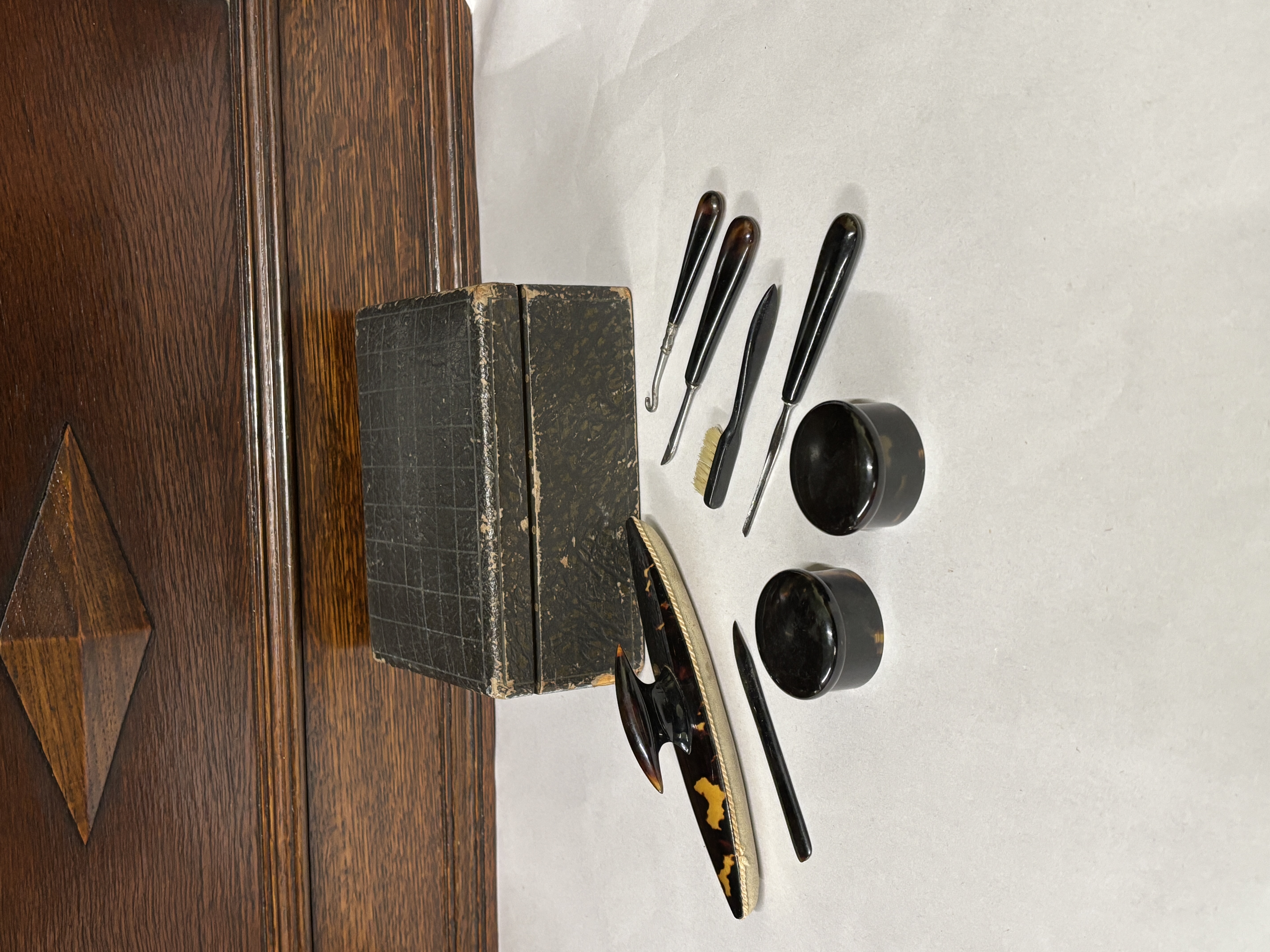 A box containing a vintage manicure set