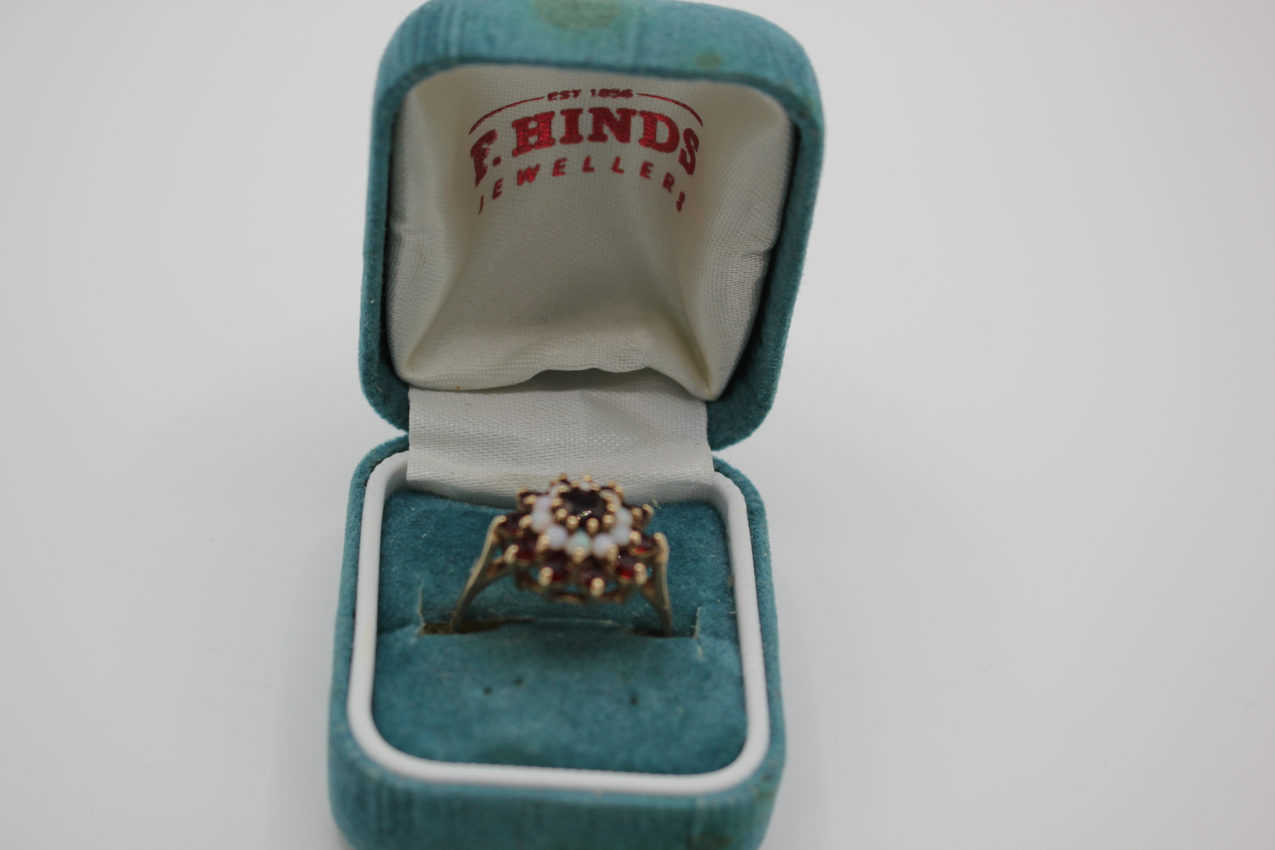 9ct gold ring with rubies and pearls 3.30g