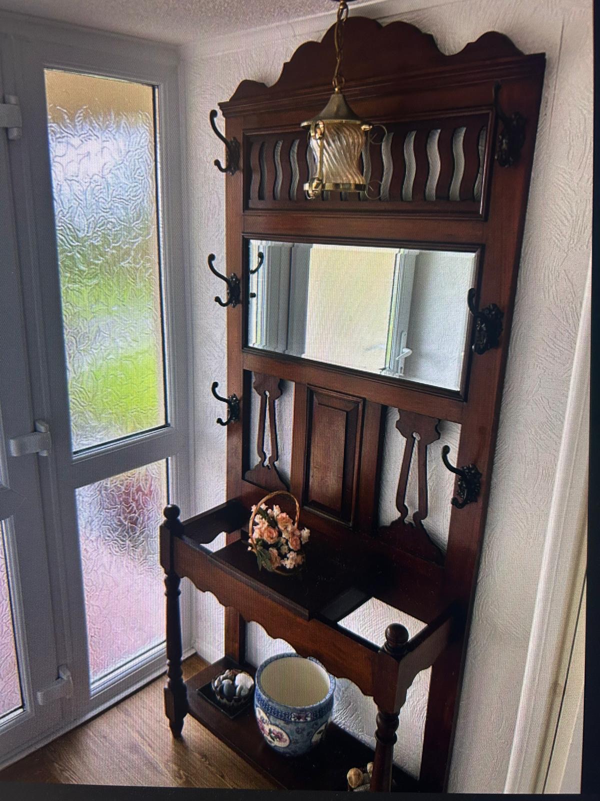 A mirror backed Hall Stand complete with hooks, umbrella trays and a lift up glove box