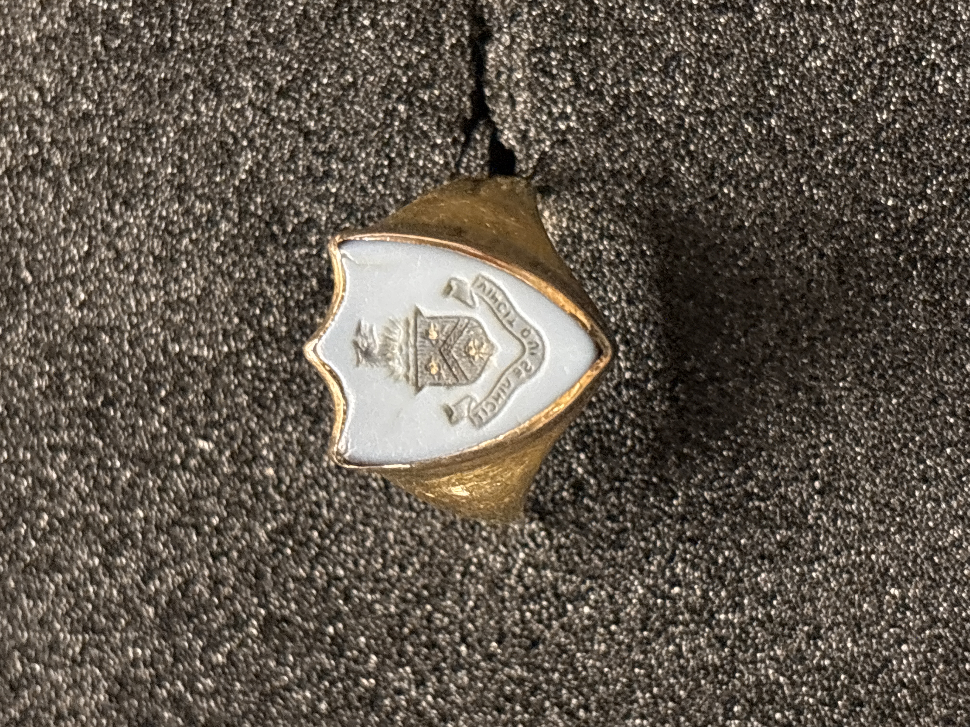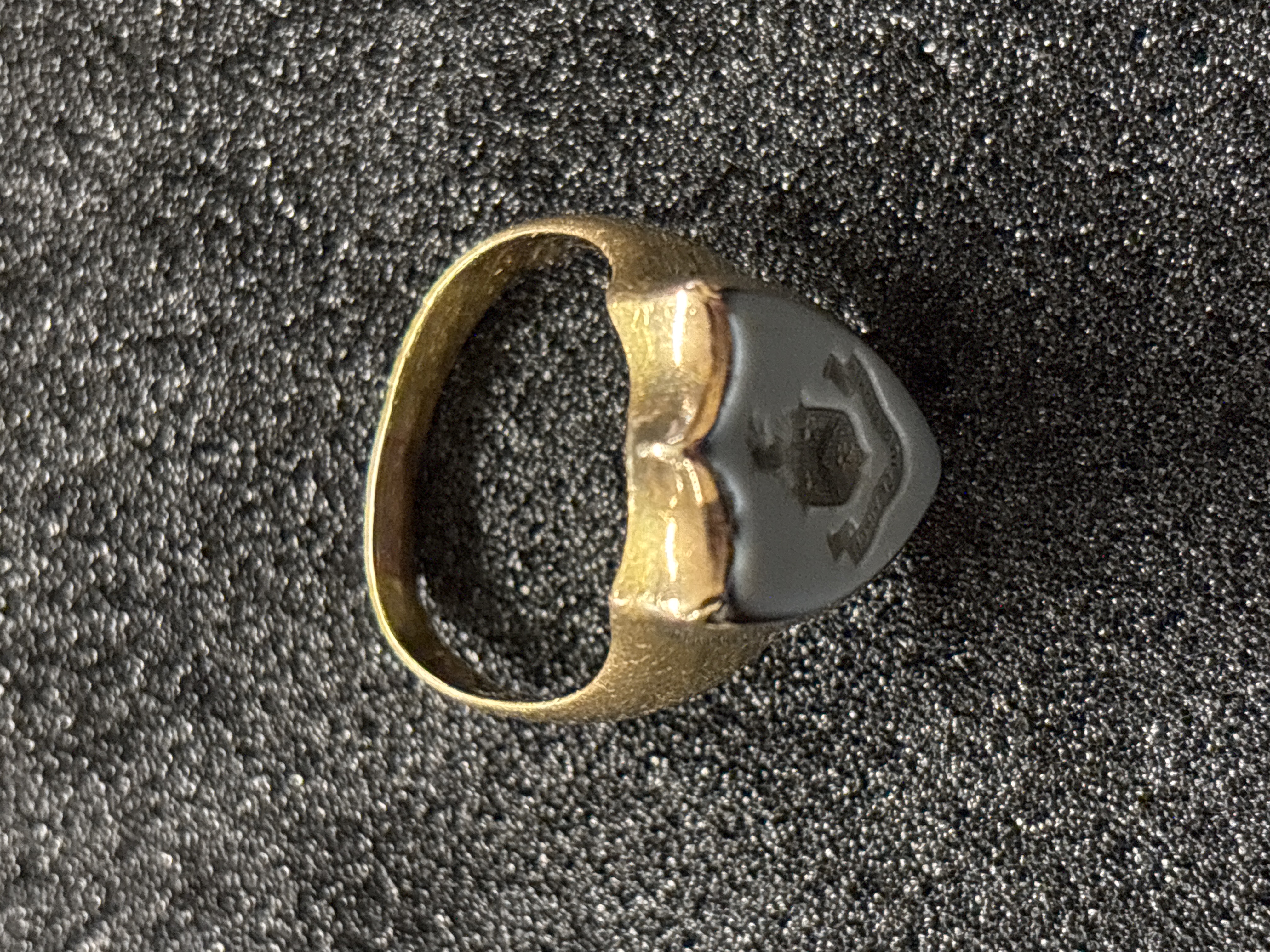 A gents gold ring (testing as 18 ct) with a shield shaped seal weighing 7.4 gms overall