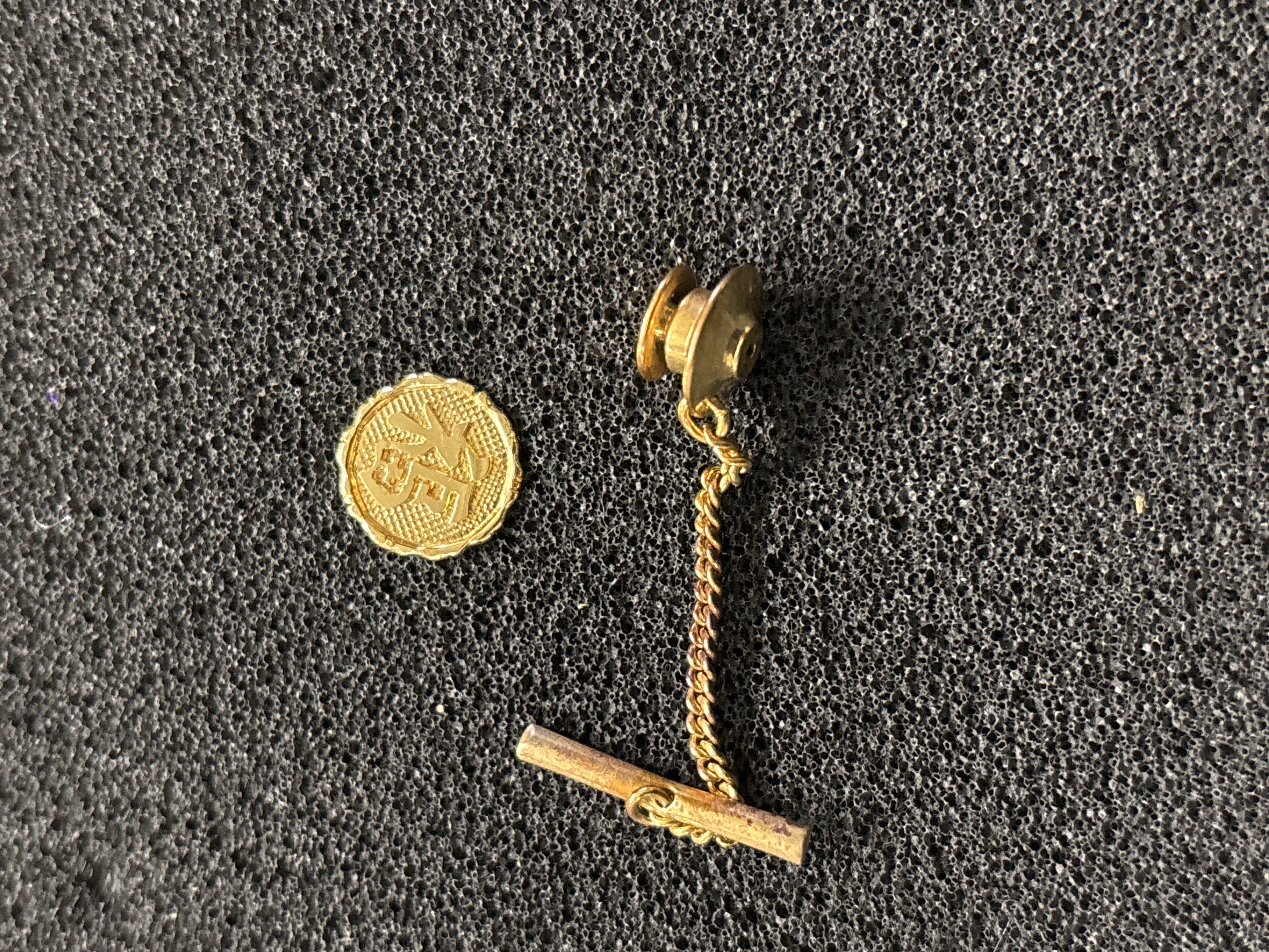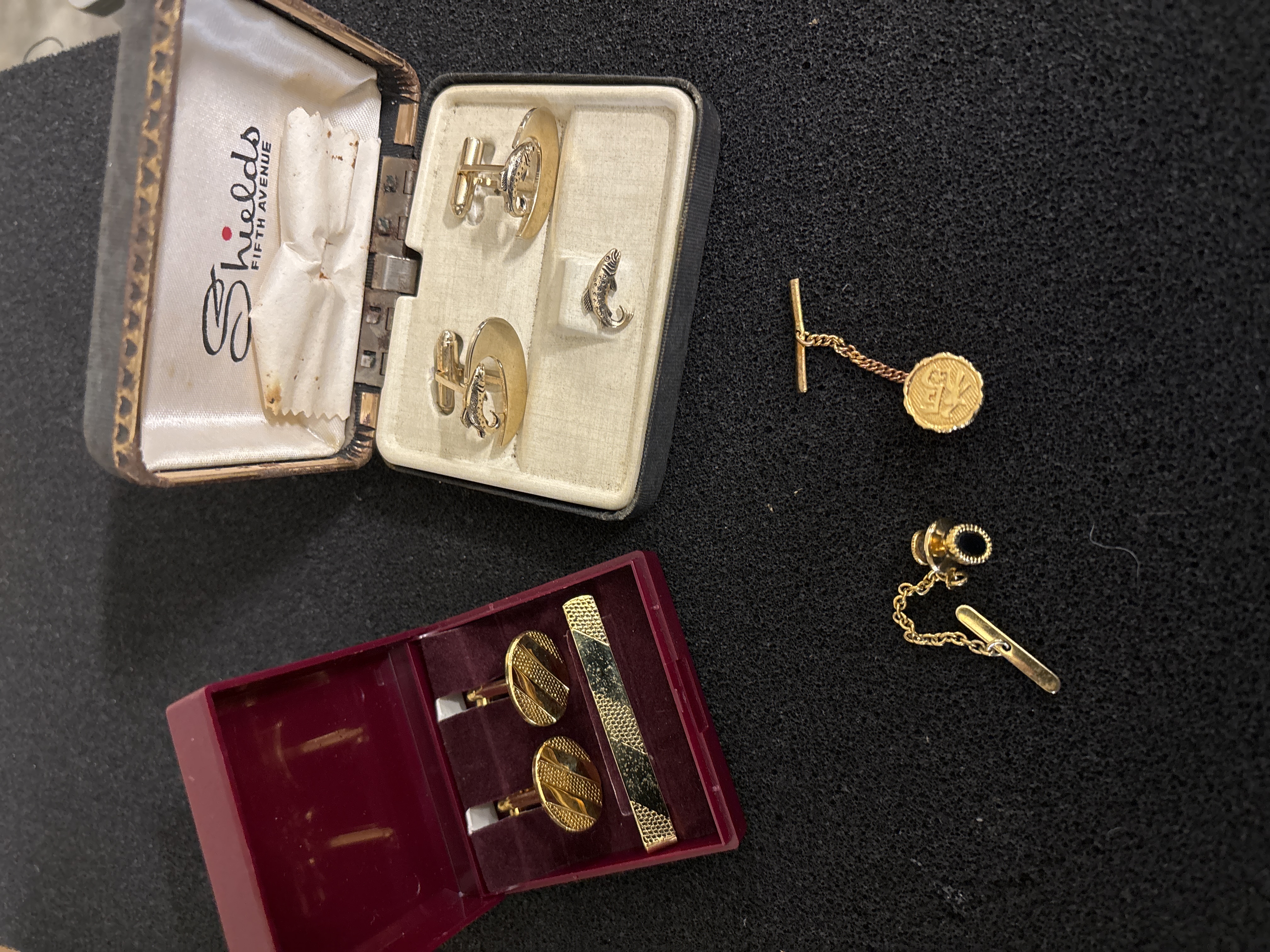 An assortment of cufflinks, tie pins etc to include one which has been tested as gold