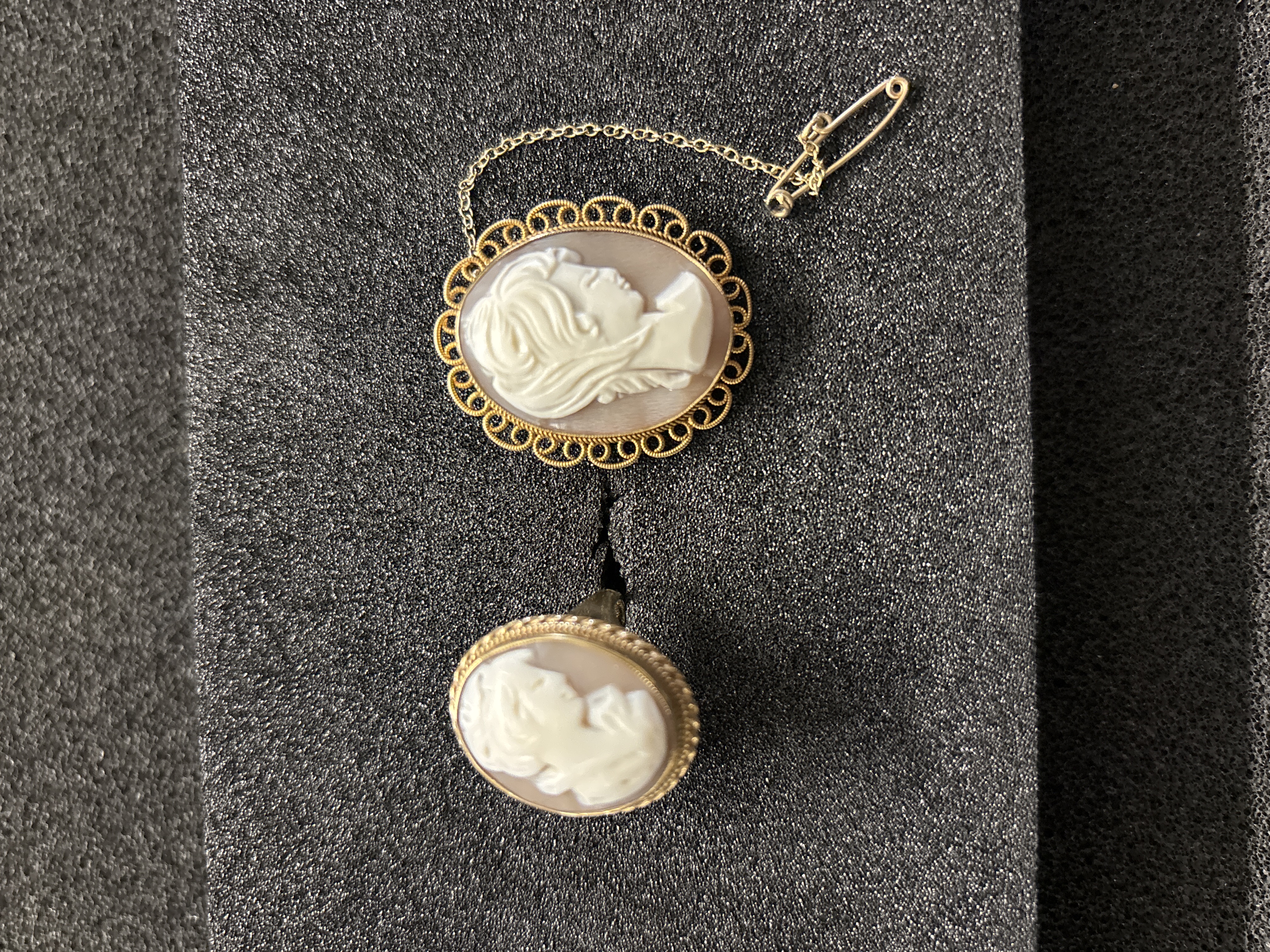 A Cameo pendant brooch together with a cameo...