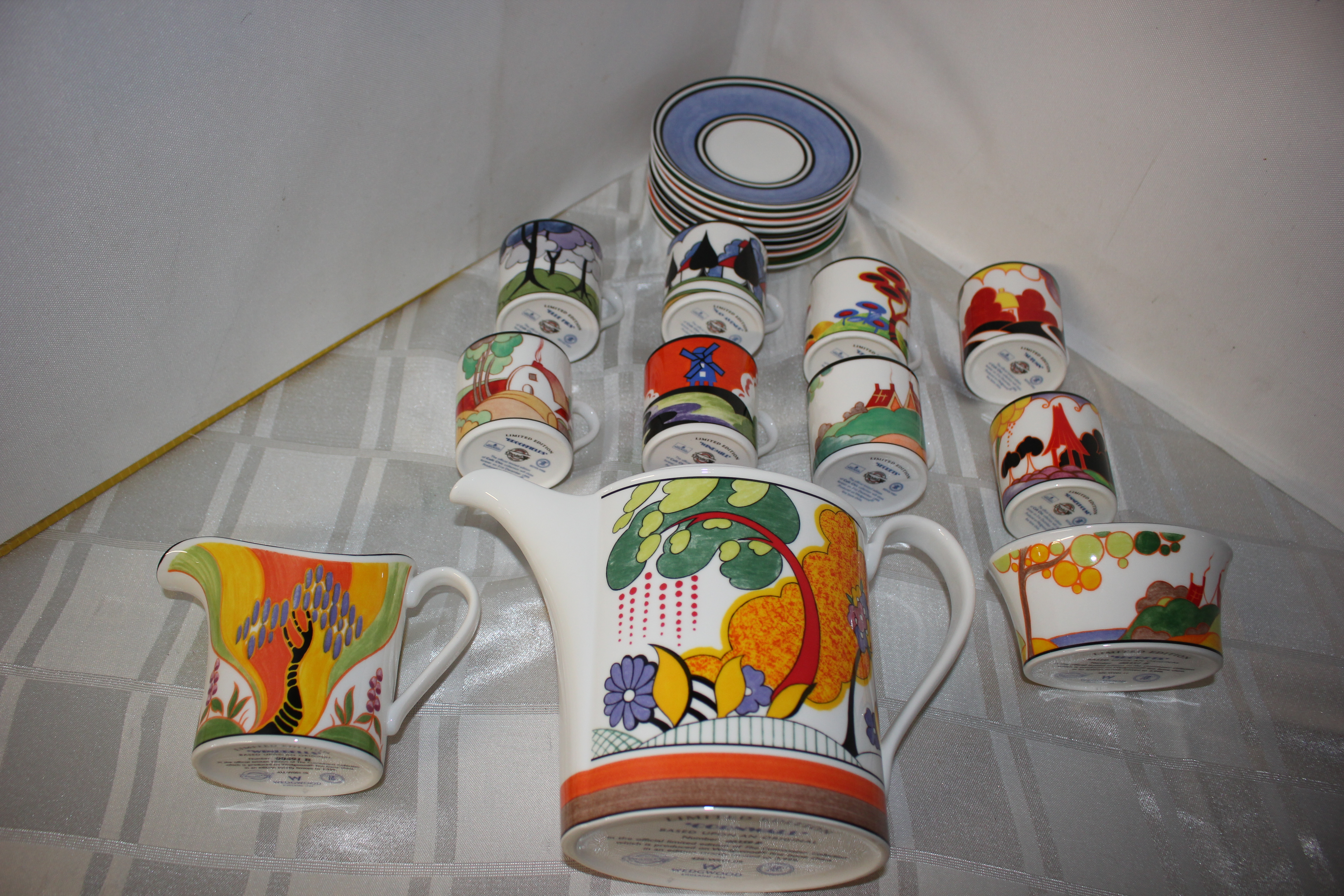 Wedgwood coffee set with cans and saucers Clarice Cliff design