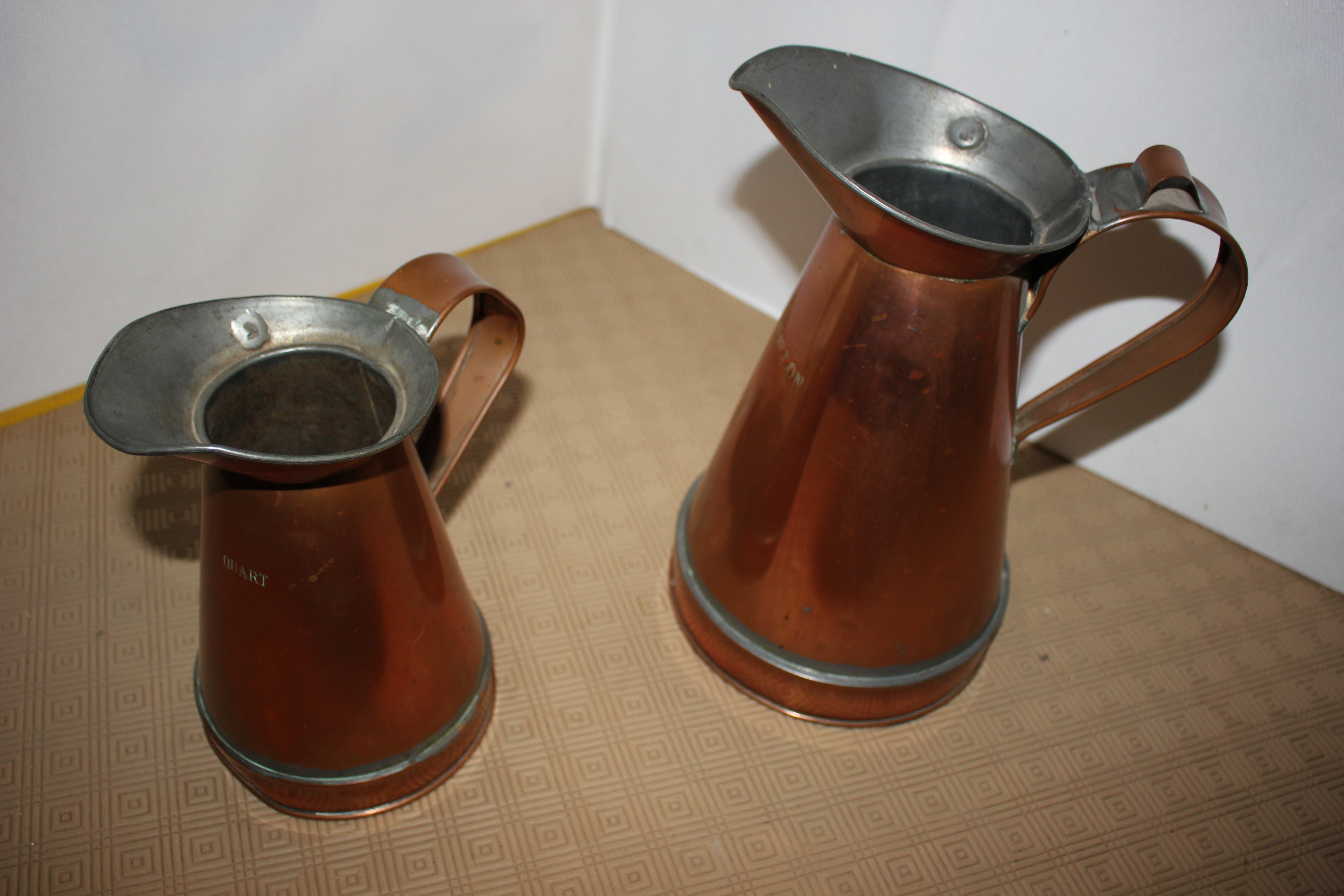 Copper measuring jugs 1/4 and 1/2 gallon with...